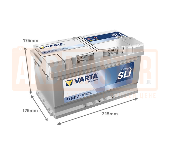 Автомобильный аккумулятор VARTA Silver Dynamic 85 А·ч 800A 585 200 080 316 2 Обратная полярность R+ 315x175x175