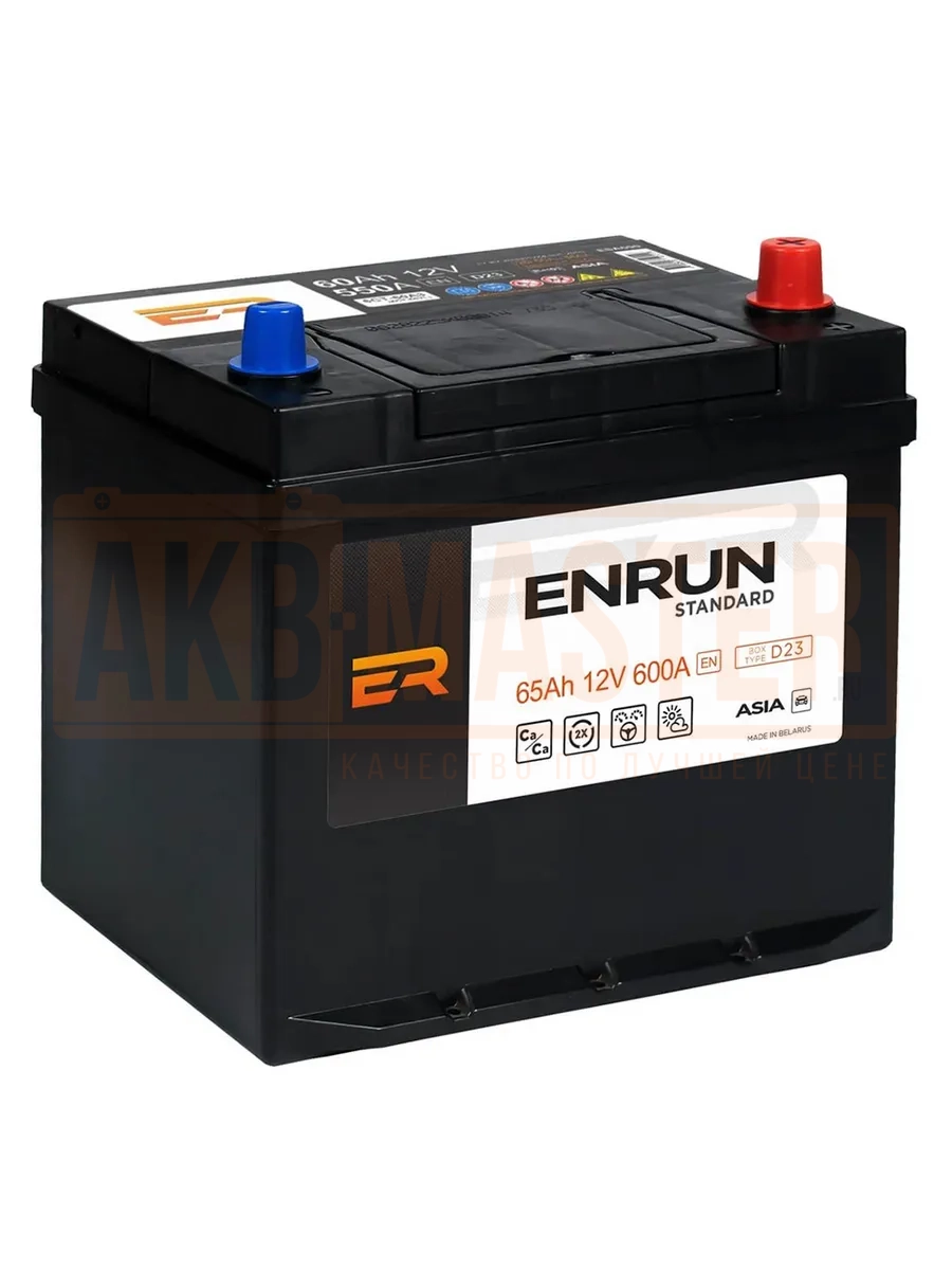 Автомобильный аккумулятор ENRUN JIS Standart 65 А·ч 600A ESA650 Обратная полярность R+ 230x179x225