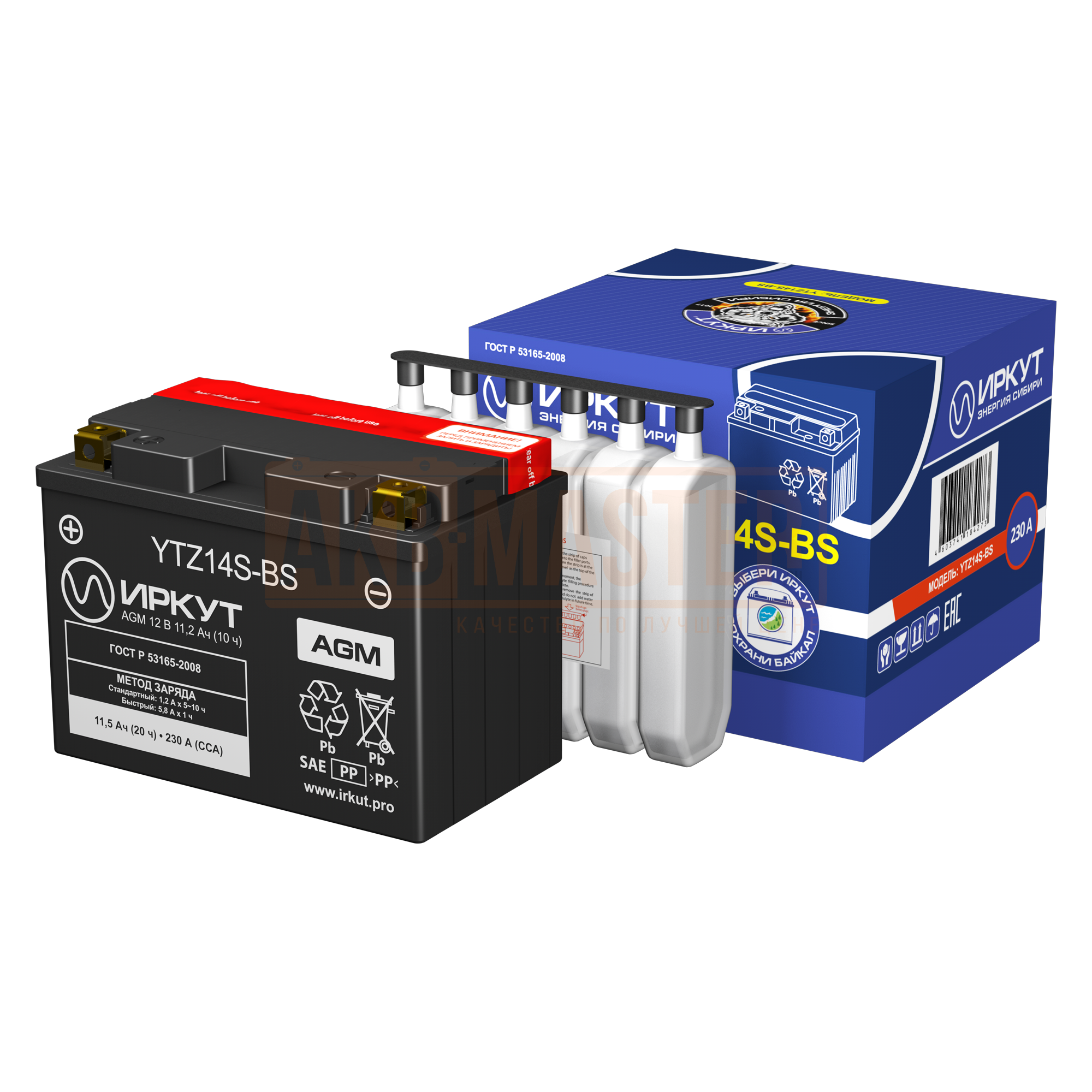 Мото аккумулятор ИРКУТ 11,5Ач L+ ССА 230А 151х87х110 YTZ14S-BS