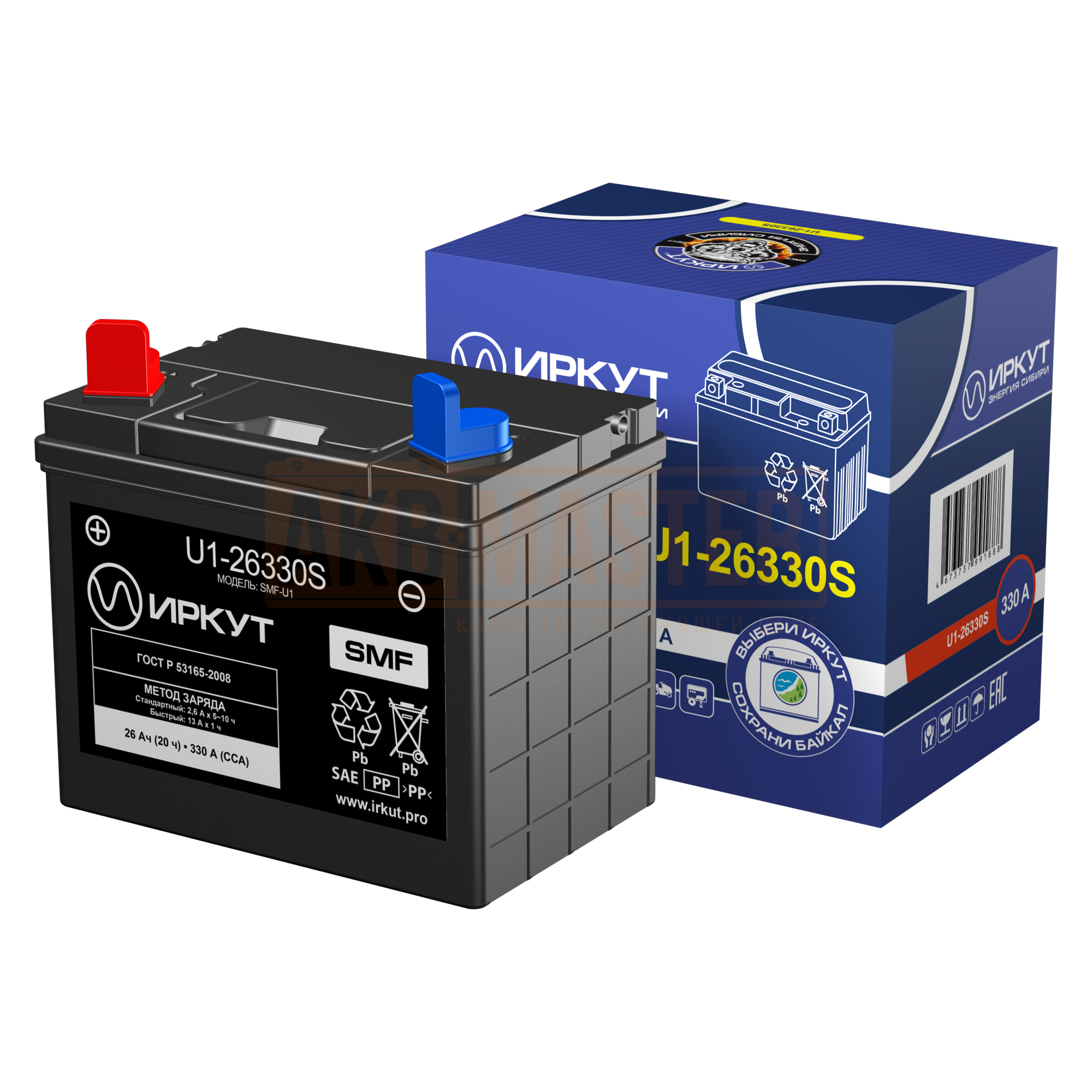 Мото аккумулятор ИРКУТ 26Ач L+ EN330A 197x130x182 U1-26330S (SMF-U1)