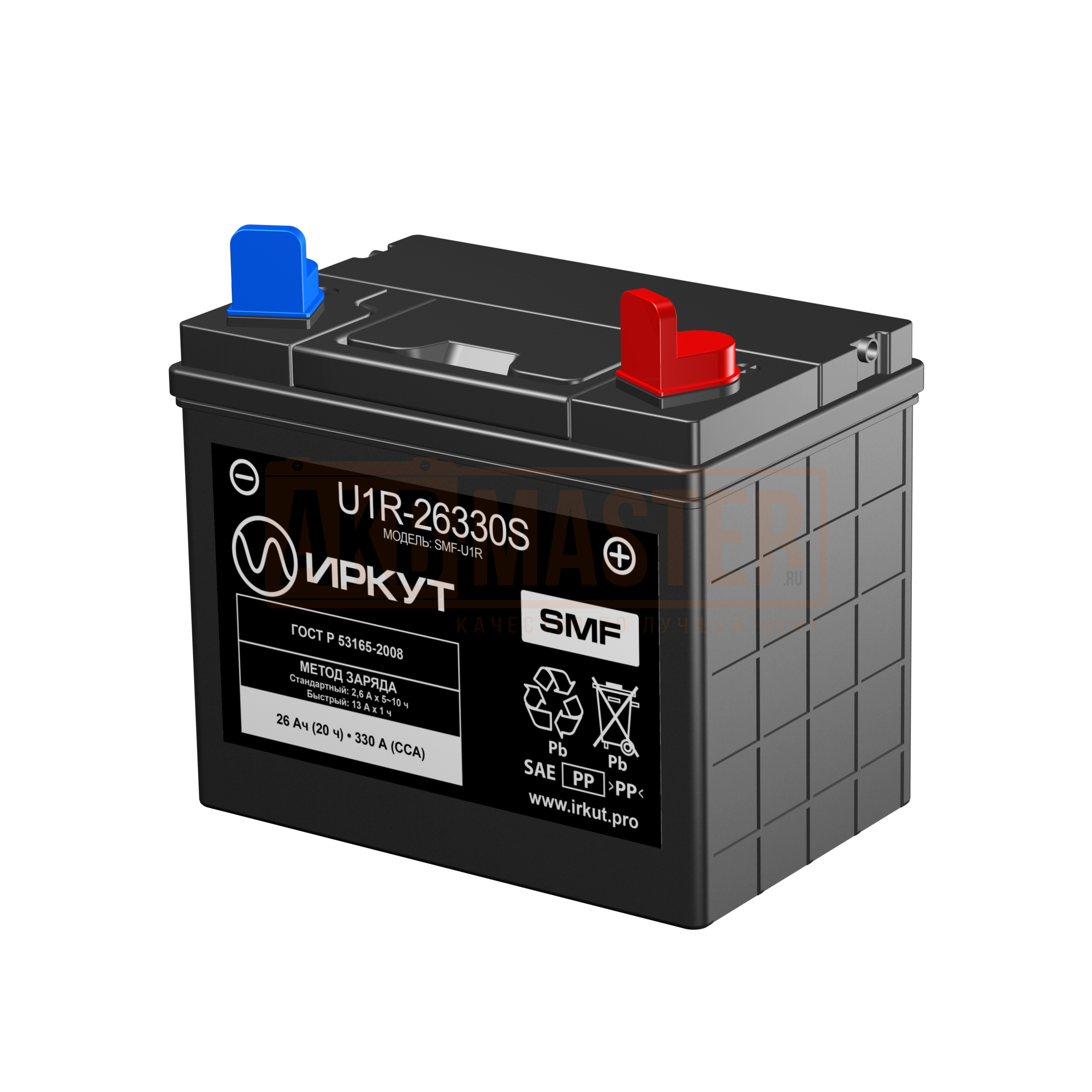 Мото аккумулятор ИРКУТ 26Ач R+ EN330A 197x130x182 U1R-26330S (SMF-U1R)