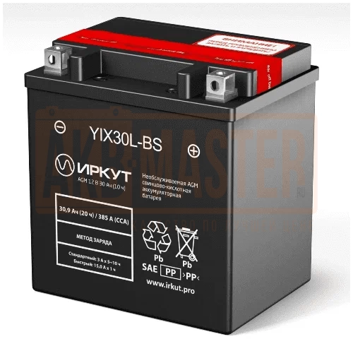 Мото аккумулятор ИРКУТ Start-Stop &Go 30 А·ч 385A YIX30L-BS Обратная полярность R+ 166x126x175 YIX30L-BS