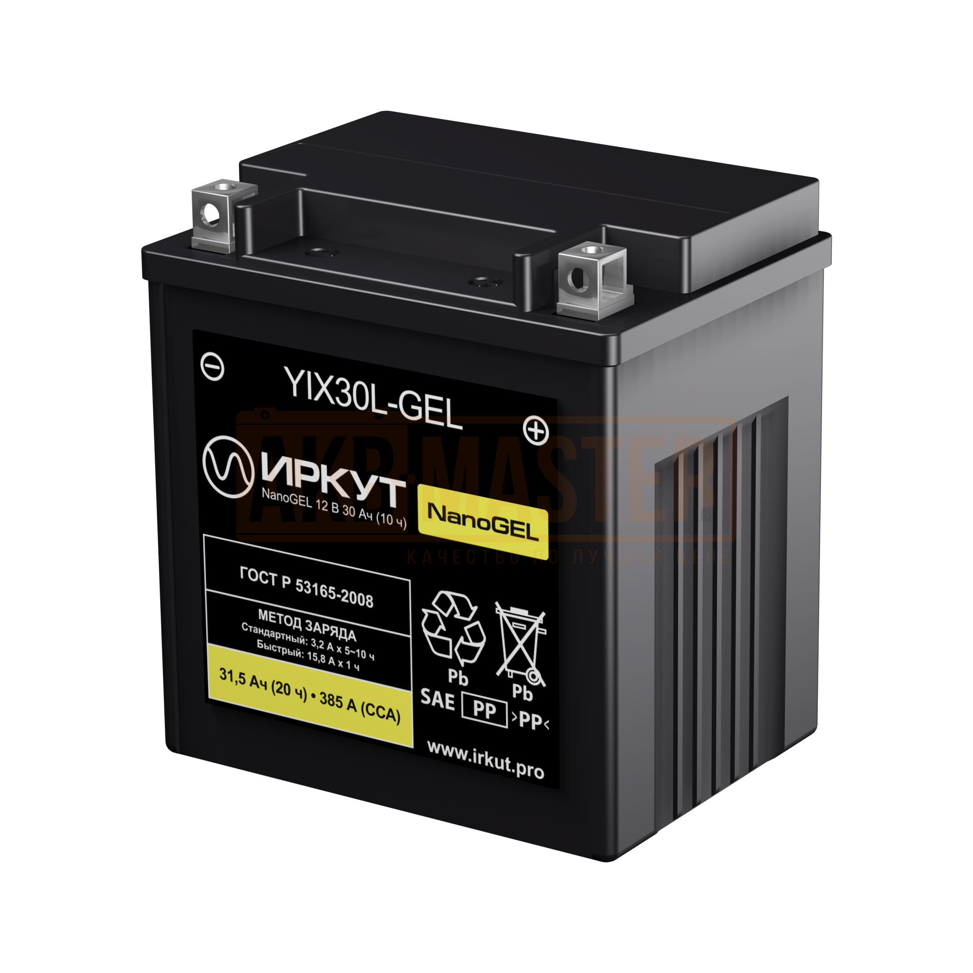 Мото аккумулятор ИРКУТ 31,5Ач R+ ССА 385А 166х126х175 YIX30L-GEL