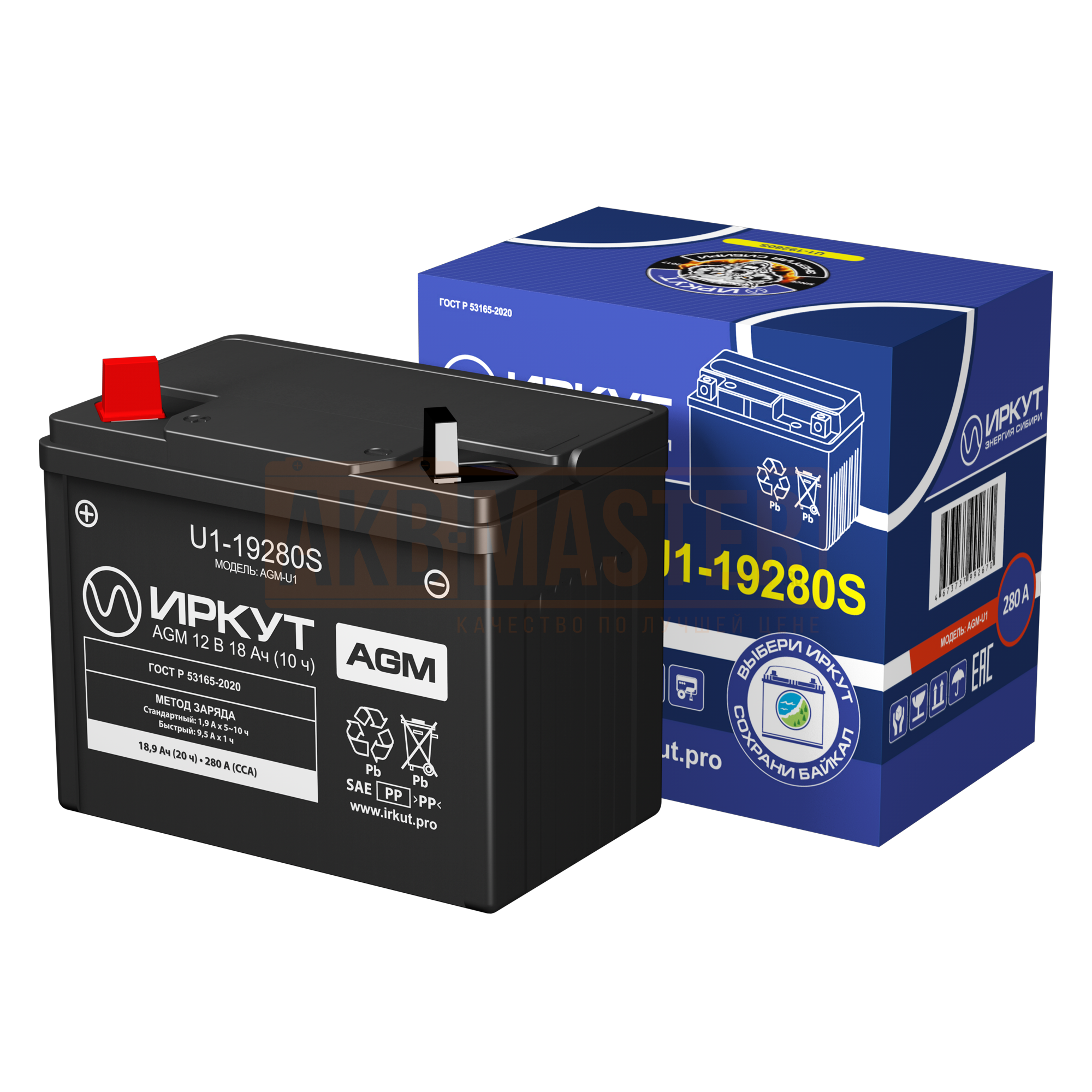 Мото аккумулятор ИРКУТ AGM 18,9Ач L+ EN280A 197x130x159 U1-19280S