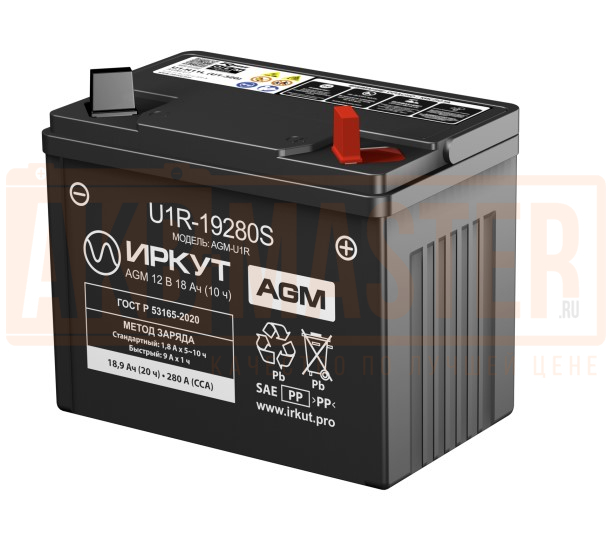 Мото аккумулятор ИРКУТ AGM 18,9Ач R+ EN280A 197x130x159 U1R-19280S