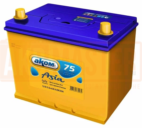 Автомобильный аккумулятор АКОМ ASIA 75 А·ч 85D26R Прямая полярность борт