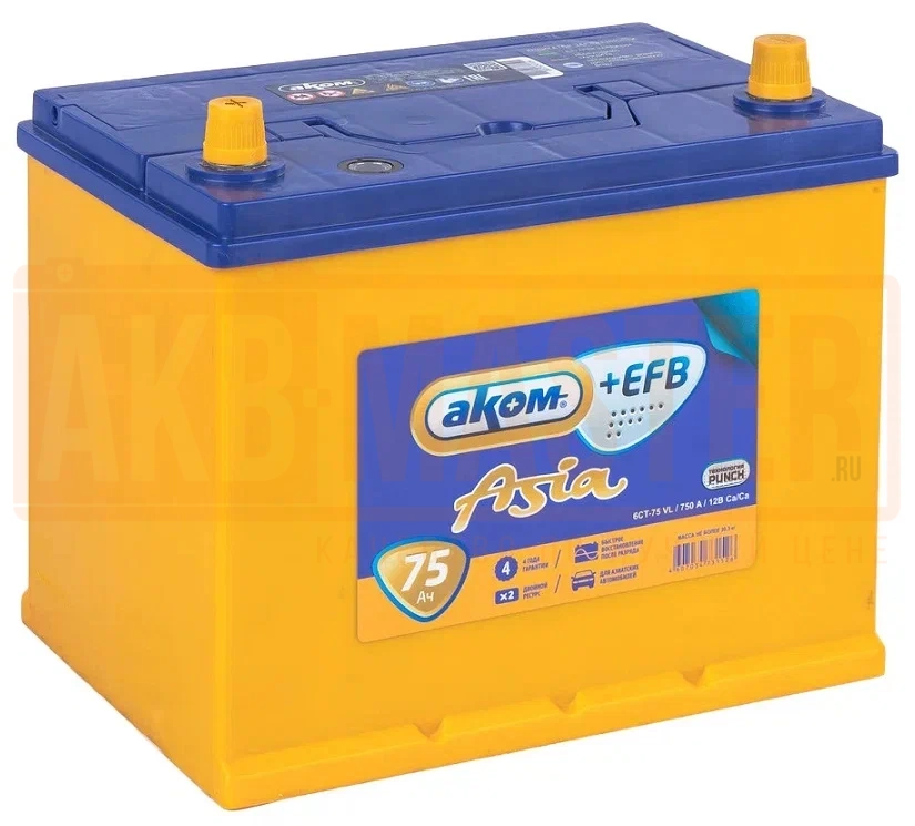 Автомобильный аккумулятор АКОМ ASIA EFB 75 А·ч 6CT-75.1 ASIA EFB Прямая полярность борт