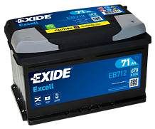 Автомобильный аккумулятор EXIDE Excell 71 А·ч 670 А EB712 Обратная полярность низкий 278x175x175