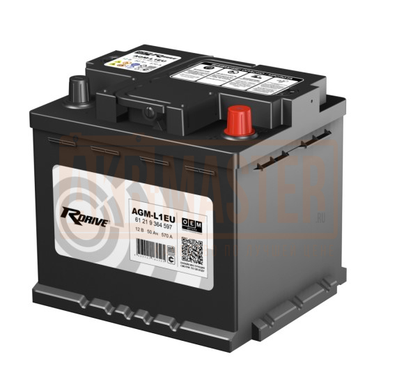 Автомобильный аккумулятор RDRIVE OEM AGM-L1EU 50 А·ч (61 21 9 364 597 BMW) Обратная полярность