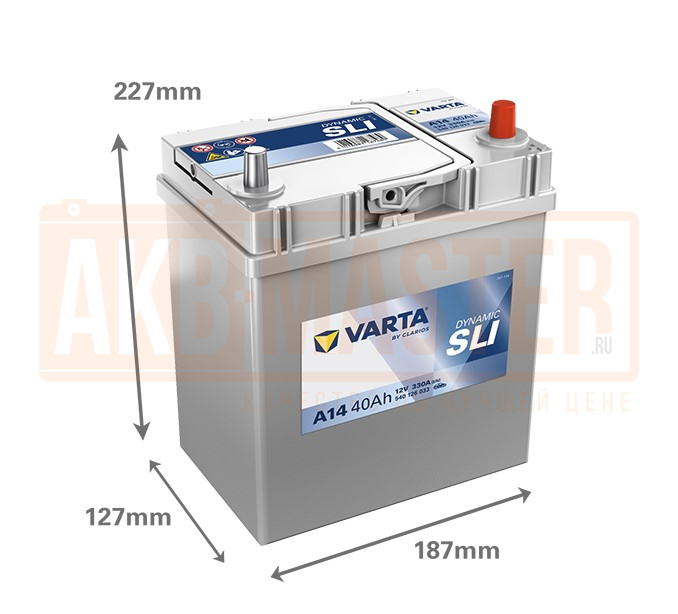 Автомобильный аккумулятор VARTA Blue Dynamic 40 А·ч 330A 540 126 033 313 2 Обратная полярность R+ 187x127x227