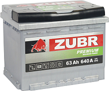Автомобильный аккумулятор ZUBR PREMIUM 63 А·ч 640 А ZP630 Обратная полярность 242x175x190