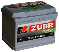 Автомобильный аккумулятор ZUBR PREMIUM 63 А·ч 640 А ZP631 Прямая полярность 242x175x190