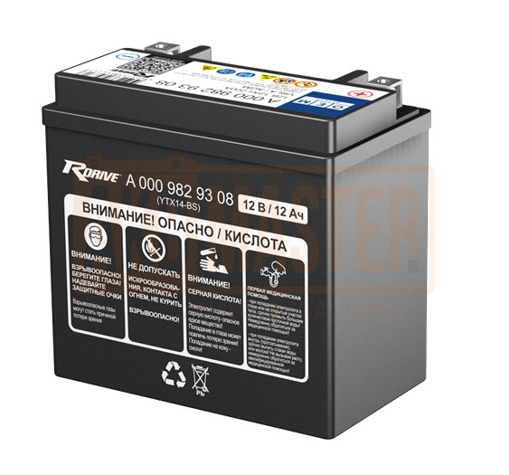 Автомобильный вспомогательный аккумулятор RDRIVE OEM A 000 982 93 08 (MERCEDES) 12 А·ч YTX14-BS Прямая полярность