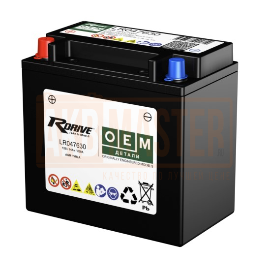 Автомобильный вспомогательный аккумулятор RDRIVE OEM LR047630 (LAND ROVER) 13 А·ч YTX14-BS Прямая полярность