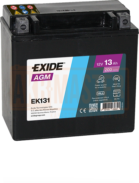 Мото аккумулятор EXIDE Start-Stop Auxiliary EK131 13Ач L+ EN200A 150x90x145 B00