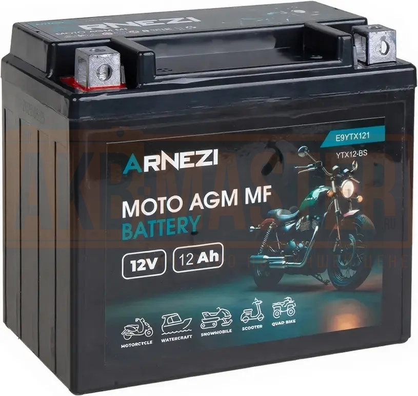 Мото аккумулятор ARNEZI AGM 12Ач L+ EN150А 150x86x130 (YTX12-BS)