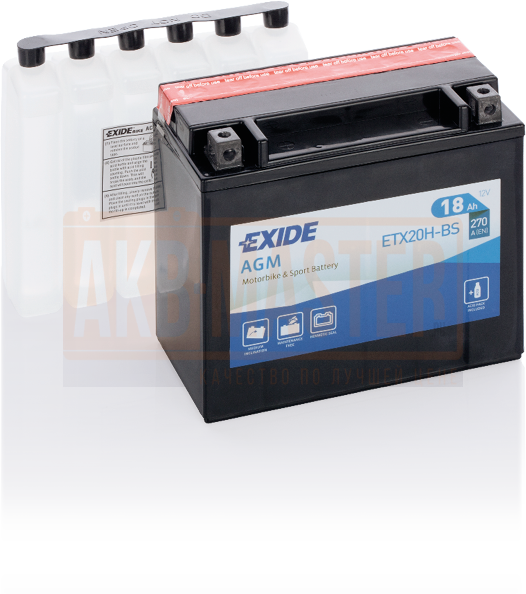 Мото аккумулятор EXIDE AGM-Dry Technology ETX20H-BS 18Ач L+ EN270A 175x87x155 YTX20H-BS B00