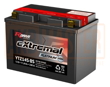 Мото аккумулятор RDRIVE eXtremal Platinum 8,6Ач L+ ССА 170А 151х87х94 YTZ10S-BS