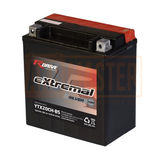 Мото аккумулятор RDRIVE eXtremal Silver 18Ач L+ ССА 270А 150х87х161 YTX20CH-BS