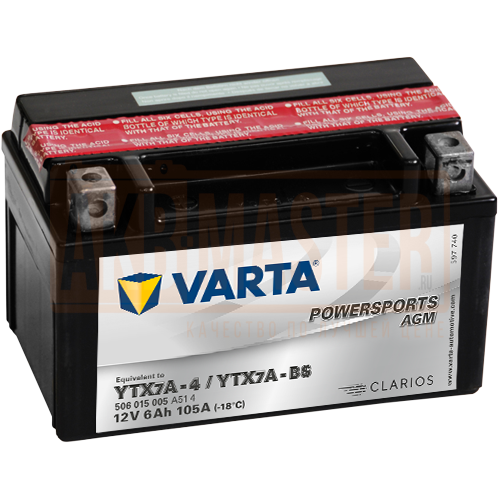 Мото аккумулятор VARTA МОТО 6 AGM (YTX7A-4), (YTX7A-BS) 150х85х95 (ETN-506 015 005)