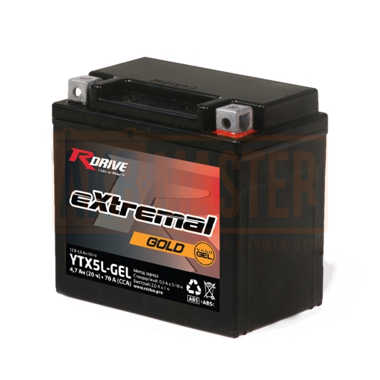 Мото аккумулятор RDRIVE eXtremal Gold 4.5Ач R+ ССА 70А 113х70х105 YTX5L-GEL